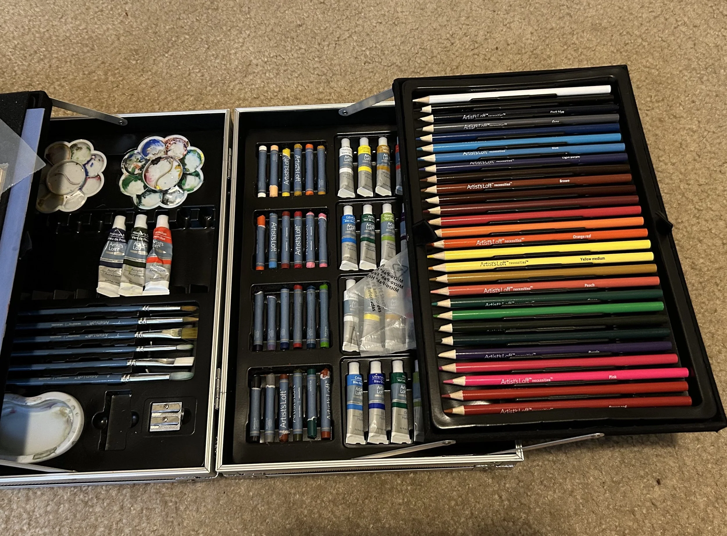 Recently, I found myself in a similar situation. I had a set of art supplies that I had gotten as a gift a little over a year ago. By now, I had used all the acrylic paint that it came with and had done a lot of pieces with the colored pencils as well. One day, while I was looking through the box and trying to decide what to do next, I noticed the untouched oil pastels, recalled my first attempt years ago, and decided to give it another shot.